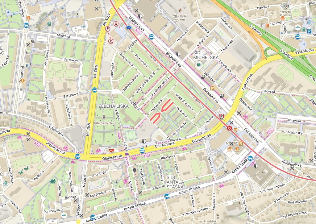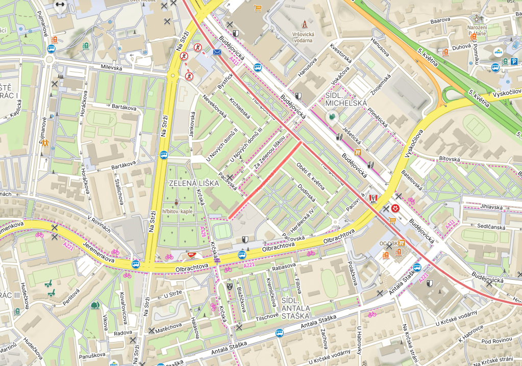 Za Zelenou liškou was built in 1935. Some time before 1720, an inn was built, south of Pankrác (then a village) and near the road that led from Prague to České Budějovice. It had a green fox – a zelená liška – painted on its gable. The fox then gave its name to the inn,… Continue reading
