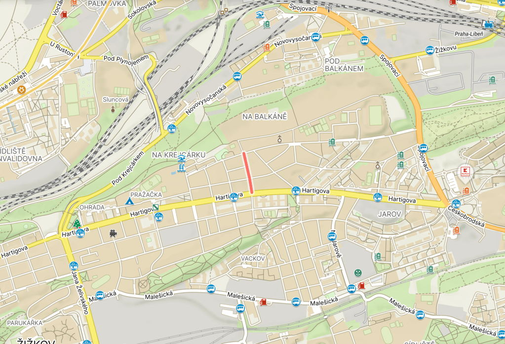 ‘Border Street’ is so called because it lies on the border between the districts of Žižkov and Vysočany.