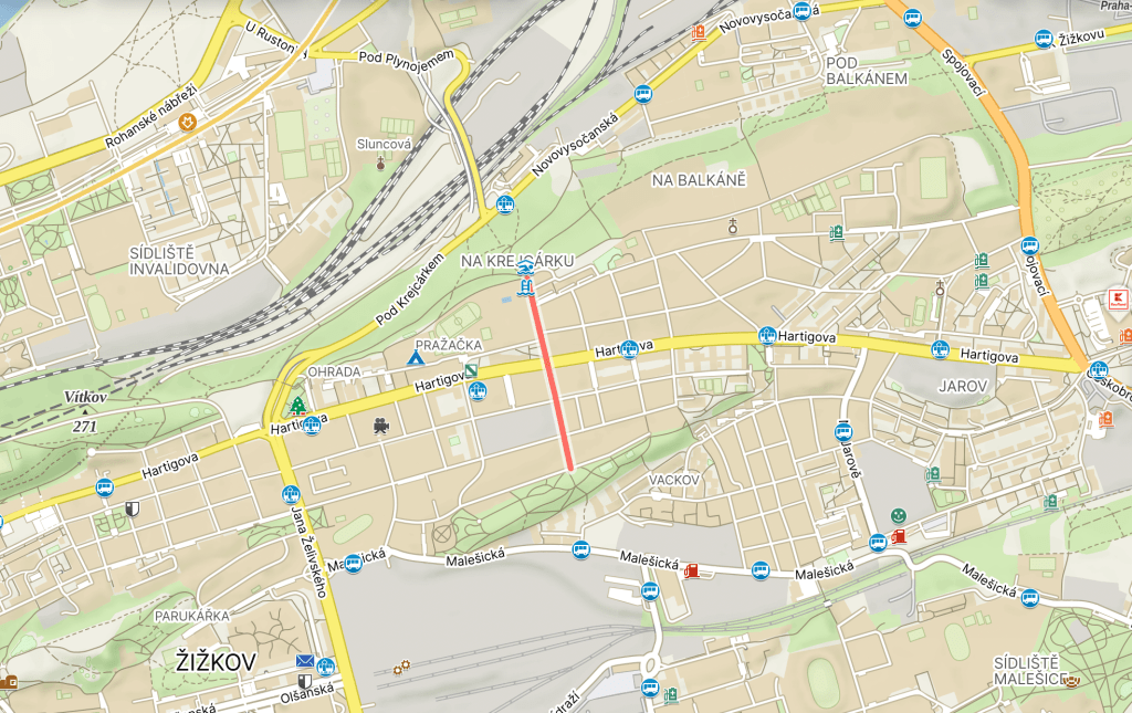 Again, there’s a grammatical difference between the street name and what it’s named after: the road is behind Žižkovská vozovna even though that is actually known as Vozovna Žižkov.