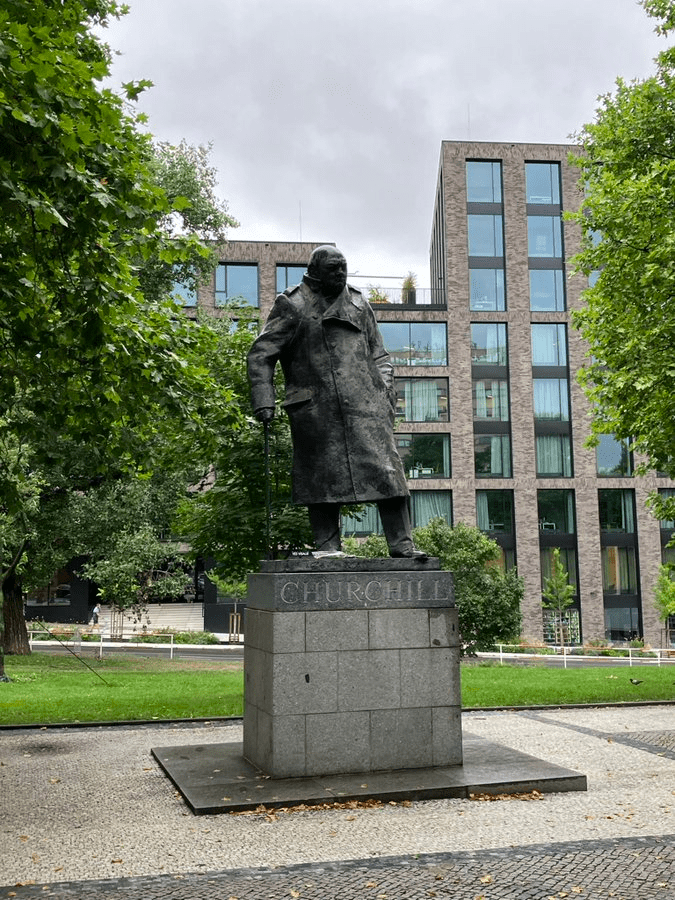 Post-communism, it became Winston Churchill Square. A statue of Churchill, identical to the one in Parliament Square in London, and sculpted by Ivor Roberts-Jones, was unveiled in 1999.