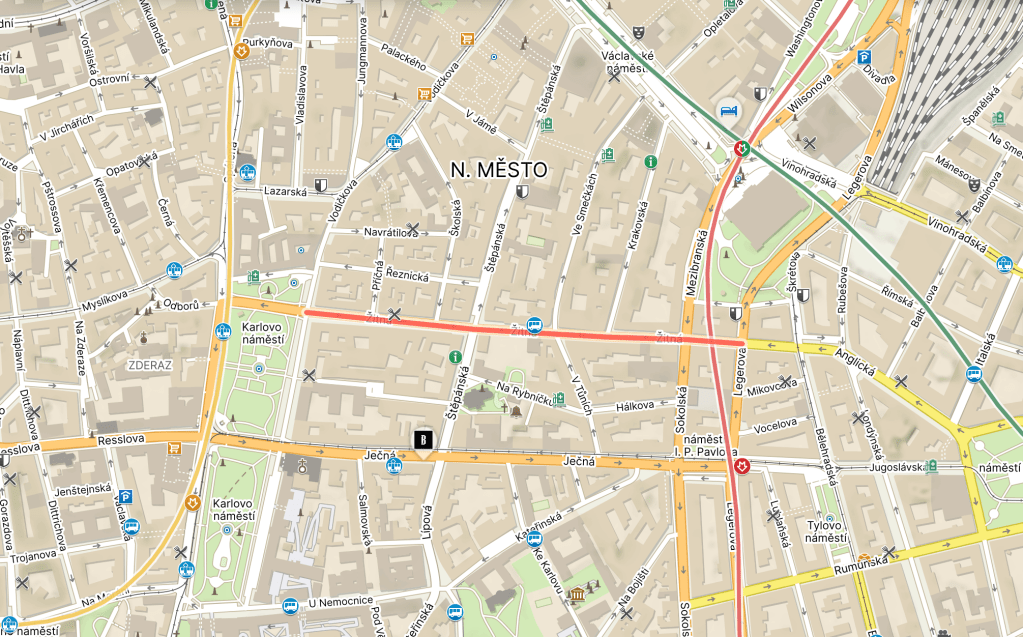 Žitná is now split between Prague 1 (its northern side) and Prague 2 (its southern side).