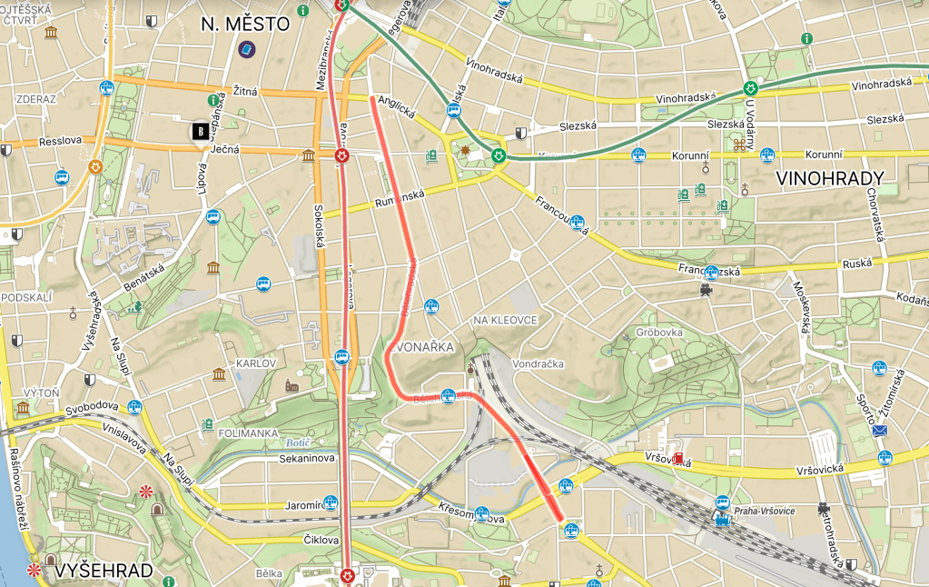 Until 1875, this was the Linecká silnice – the highway to Linz in Austria; it then became the Nuselská silnice – the highway to a somewhat nearer place, Nusle, until 1880.