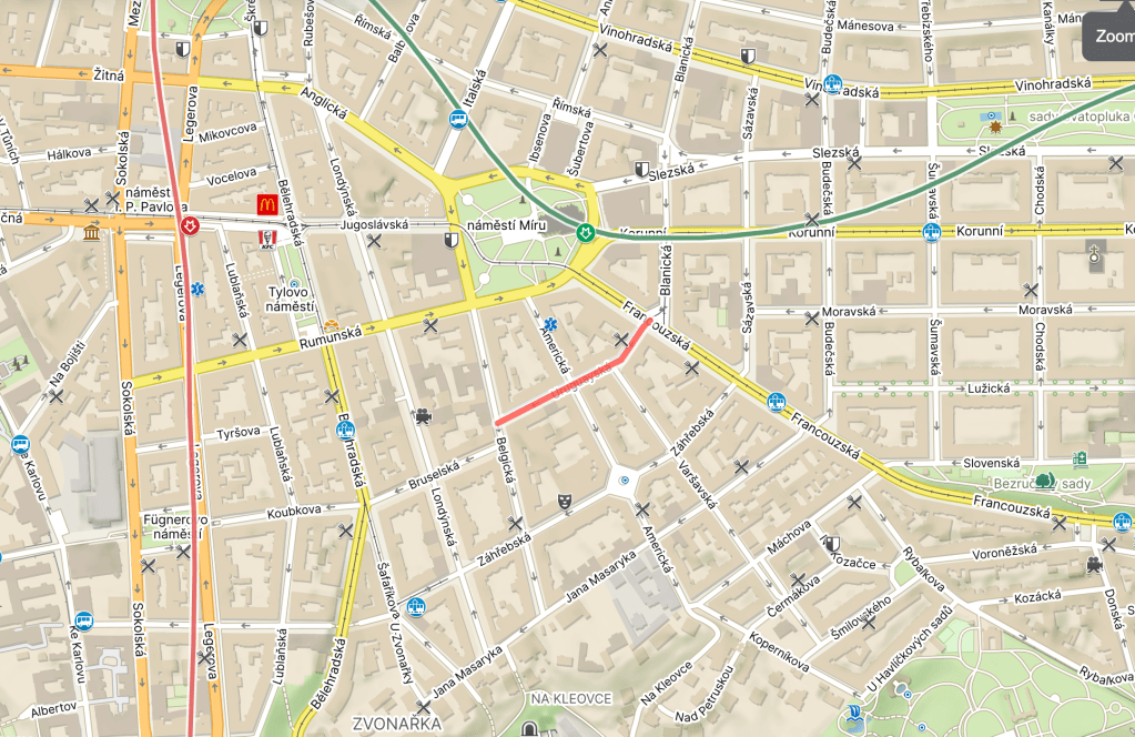It’s been Uruguayská since, except from 1940 to 1945, when it was Hraběte Spee, AKA Maximilian Johannes Maria Hubert Reichsgraf von Spee (1861-1914), a German naval officer killed during the Battle of the Falkland Islands.