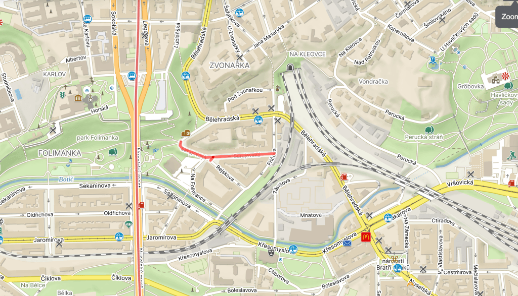Until 1940, and again from 1945 to 1947, this was Vyšehradská. I won’t explain that one any further for now, as: a) you’ve already guessed; b) there’s a current Prague 2 street called that anyway (spoiler alert).