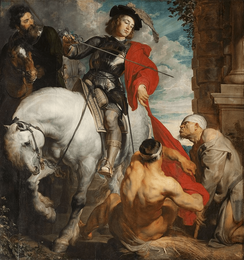 St Martin is Martin of Tours (died 367), who, according to legend, cut his cloak in two to give half of it to a beggar, and then dreamed of Jesus wearing the half he had given away. Martin was also a patron saint of France during the Third Republic.