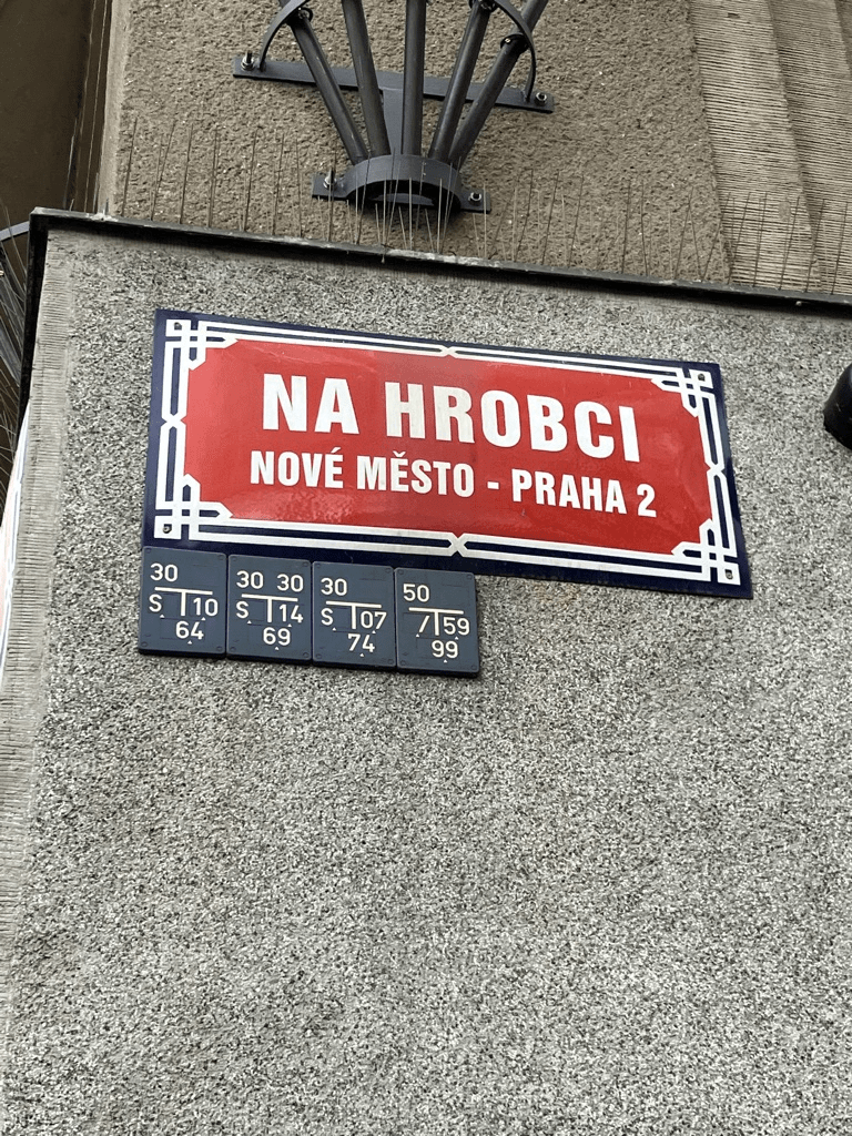 Na Hrobci was also the name of a house where the street is now, which included images of six Přemyslid princes – the three listed above, plus Vojen, Vratislav (https://whatsinapraguestreetname.com/2024/08/25/prague-2-day-99-vratislavova/) and Good King Václav.