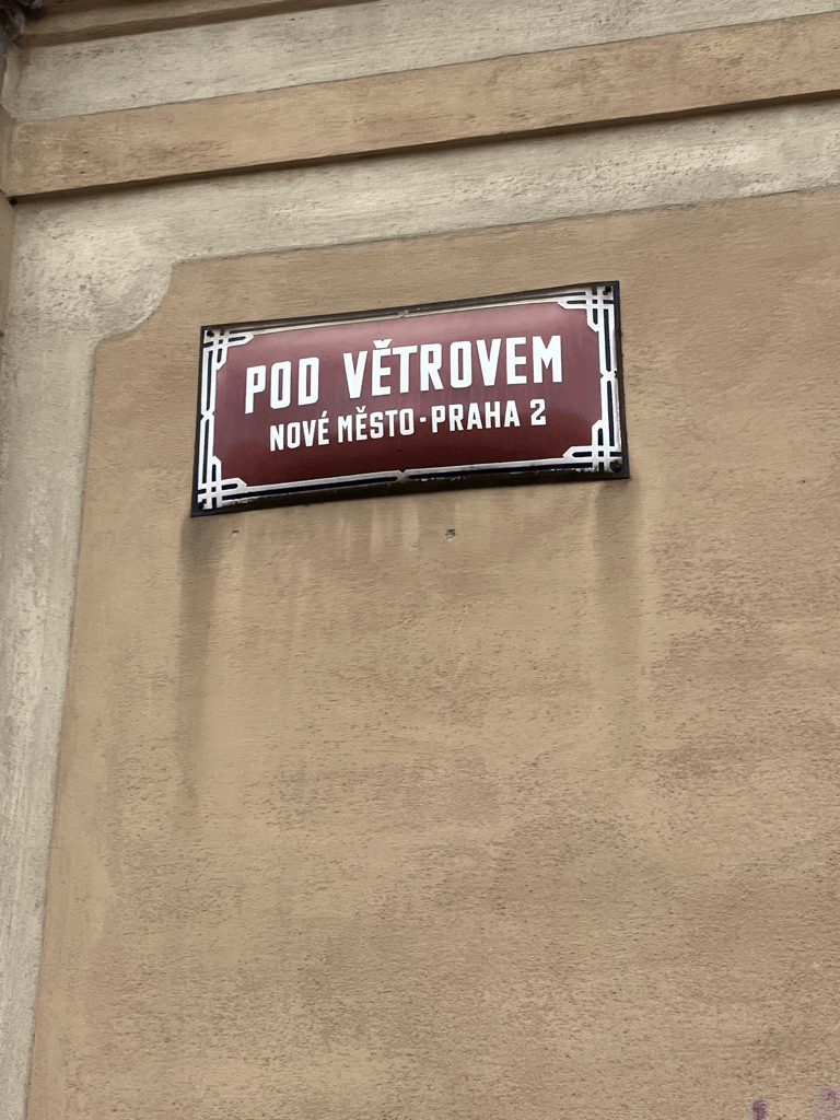We’ve touched on this one briefly before: Větrník, Větrná hora or Větrov is the (windy) hill which the Church of St. Apollinaire was built on https://whatsinapraguestreetname.com/2024/08/25/prague-2-day-113-apolinarska/.