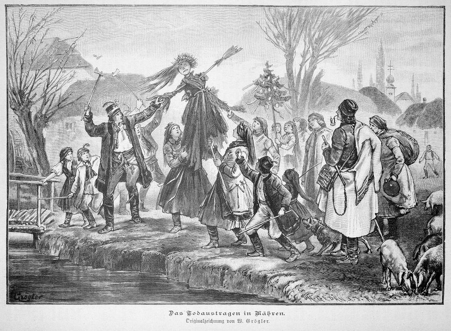 From the 1300s, there was a Slavic tradition of burning an effigy of Morana on the fifth Sunday of Lent, apparently to bring about death (or ‘out with the old, in with the new’). It largely died out in the 19th century but is still celebrated, mainly by schoolchildren.