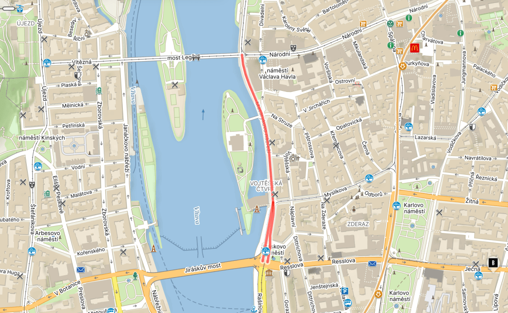The Communists made us feel less sick, but still sick, by calling it Gottwaldovo nábřeží (after Klement Gottwald (1896-1953), first Communist leader of Czechoslovakia), which stuck until 1990.