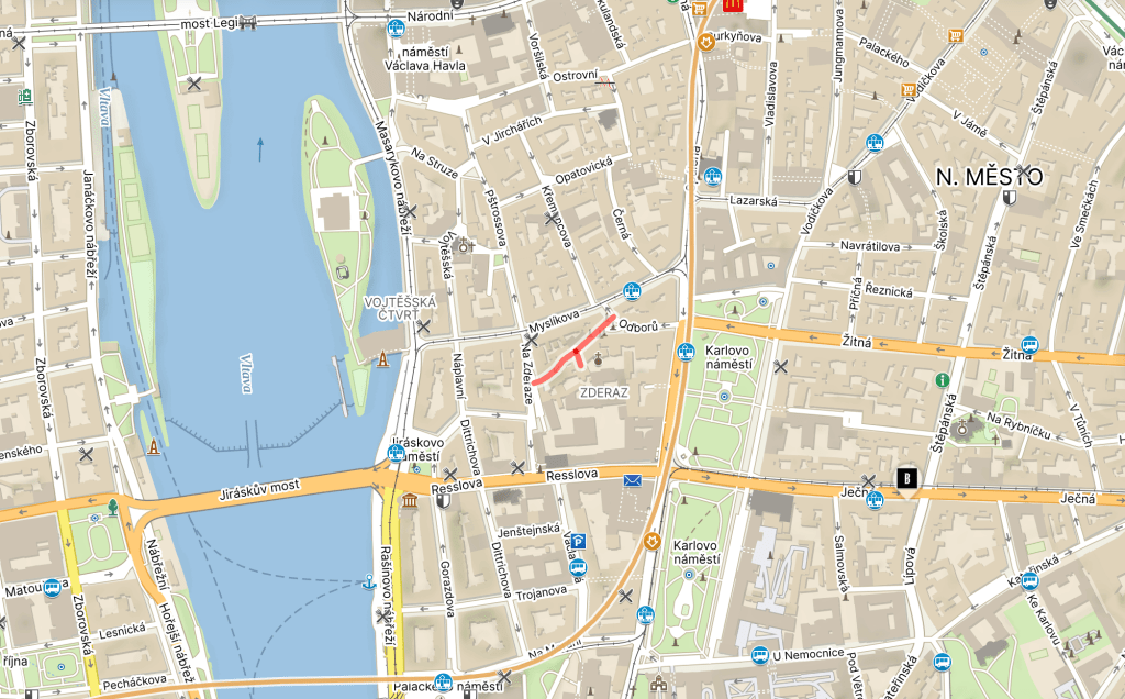 The ruins remained until 1905. And are also responsible for the name of the street: zbořit means ‘to demolish’, while zbořený means ‘demolished’.