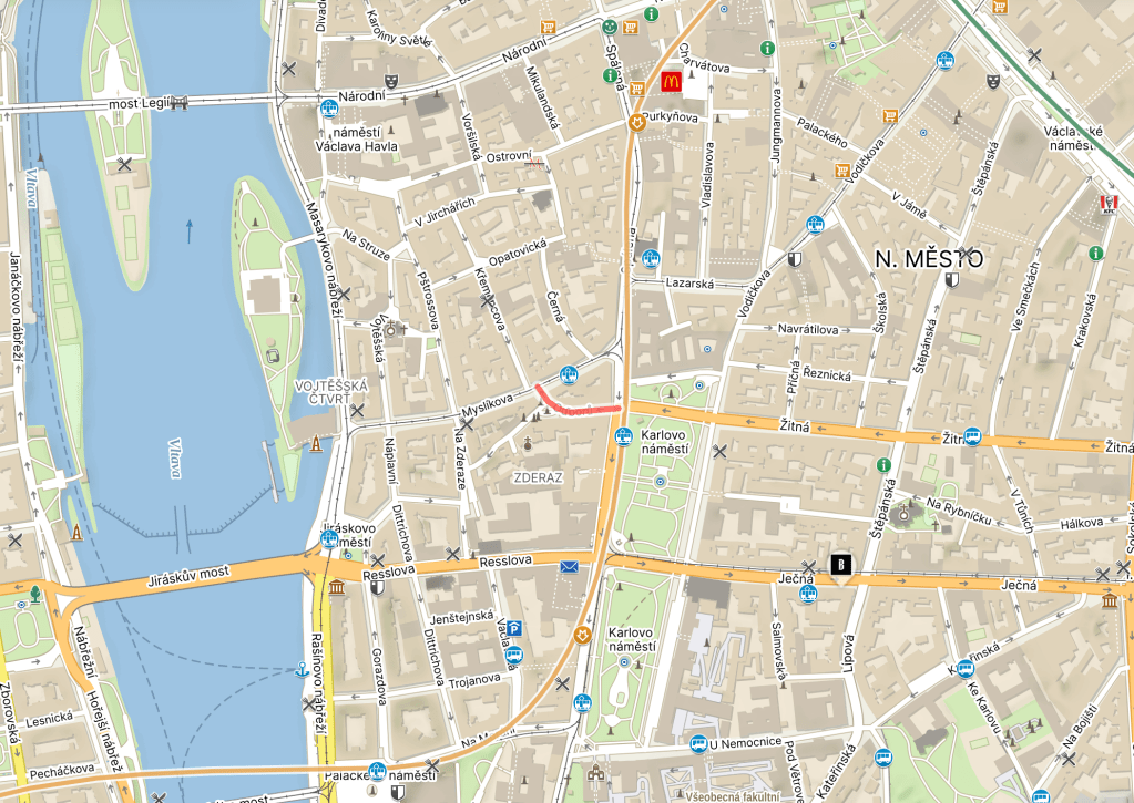 An odbor is a trade union, and the Jednotný odborový svaz veřejných a soukromých zaměstnanců / Unified Trade Union of Public and Private Employees used to have its headquarters on this street.