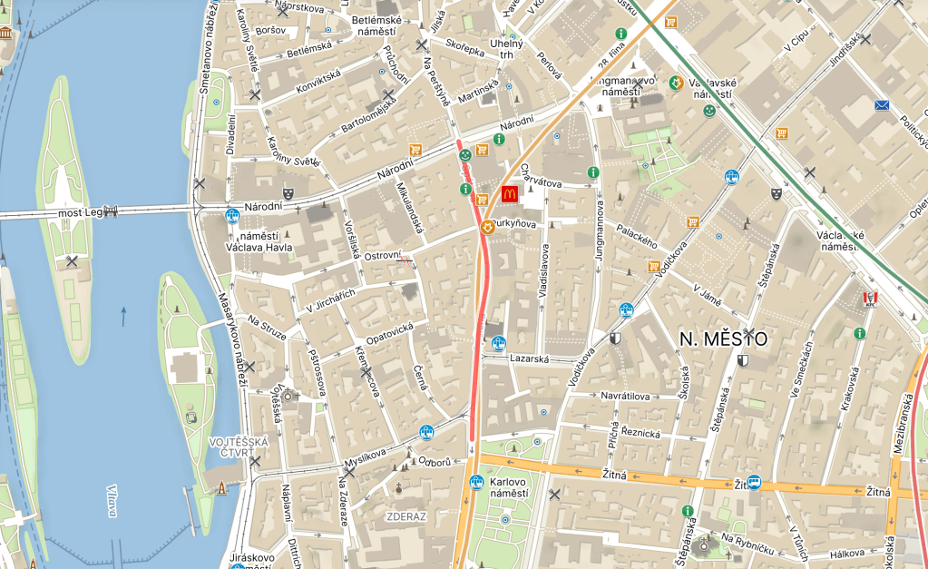 Before the founding of the New Town in 1348, this was part of a road leading from Vyšehrad to Prague Castle, and which was therefore known as Vyšehradská cesta.