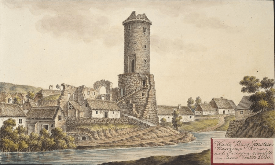 The castle – pictured in 1812 – has undergone a fair amount of reconstruction in the past decade: https://www.jenstejn.cz/zivot-v-obci-1/hrad/rekonstrukce-hradu/