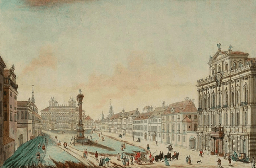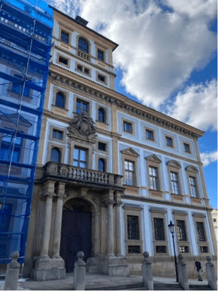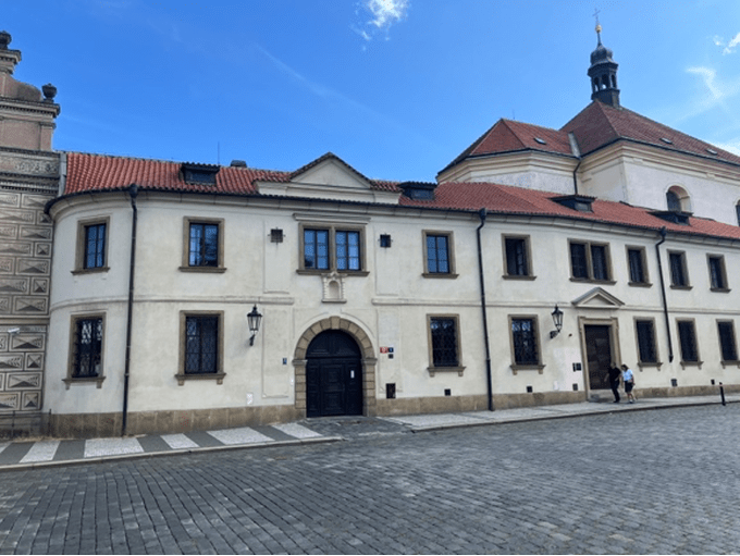 Šternberský palác, whose construction ended in 1707, is used by the National Gallery, having hosted exhibitions of the National Museum as early as 1821. Former inhabitants include Václav Hanka (https://whatsinapraguestreetname.com/2024/08/22/prague-2-day-91-lumirova/).