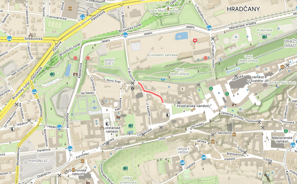 This colourful building on the street is Palác Hložků ze Žampachu, a single-storey Baroque palace which is now lived in by the Austrian ambassador.