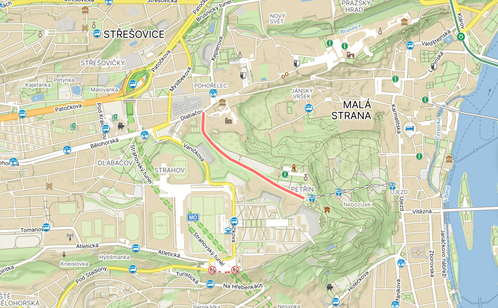 Strahovská itself connects the monastery with Petřín. Make it all the way to the end, and you’ll reach Štefánikova hvězdárna / Štefánik’s Observatory, built in 1928 and named after Slovak astronomer Milan Rastislav Štefánik.