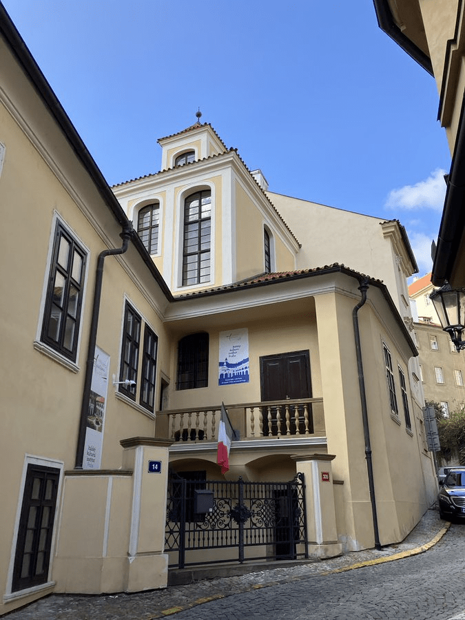 Just next door is the Vlašský špitál, which is best explained by pointing you back to yesterday’s https://whatsinapraguestreetname.com/2024/09/08/prague-1-day-31-vlasska/. Fittingly, this is now the location of the Italian Cultural Institute.