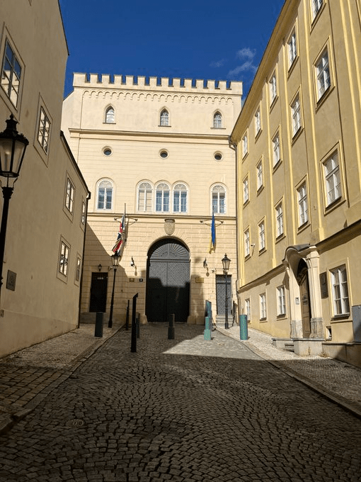 It’s currently owned by the Italian government, and is part of their embassy complex (the main address of the embassy is just next door, on Nerudova): https://whatsinapraguestreetname.com/2024/09/08/prague-1-day-37-nerudova/.