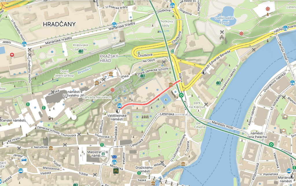 On the other side of the street, there’s Valdštejnská jízdárna, a historical riding school now used by the National Gallery.