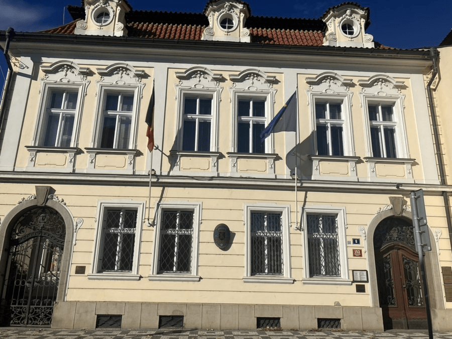 Number 6, U Bílého beránka (The White Ram), is a Neo-Baroque villa built in 1917. It hosts the Belgian Embassy.