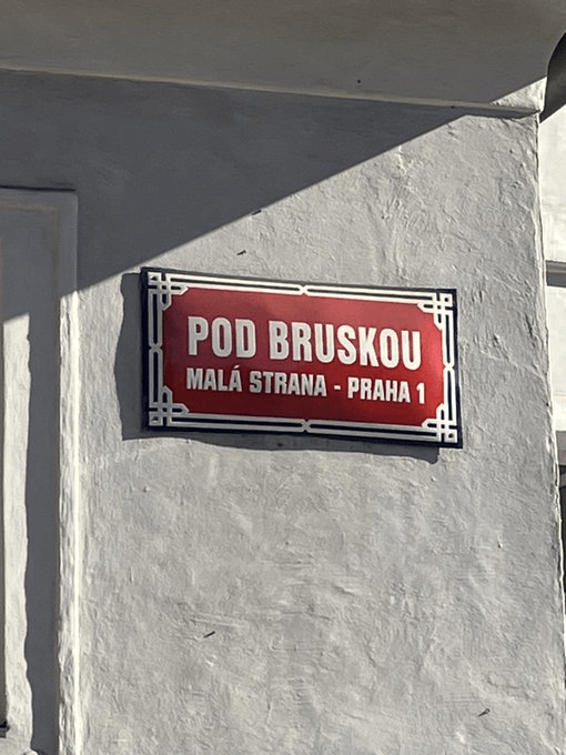 The name ‘Pod Bruskou’ was first used in the 1700s. It’s named after the Brusnice stream – see https://whatsinapraguestreetname.com/2024/09/07/prague-1-day-12-u-brusnice/ – although the street is surely above the stream, at least in part.