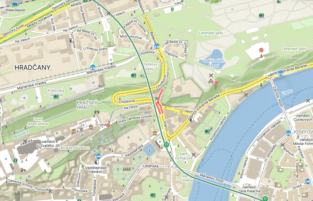The street has been a pedestrian zone since 2007, and if you want to thank somebody for that, you should get in touch with the owners of this hotel, who arranged it at their own expense: https://www.archiweb.cz/n/home/ze-slepe-ulice-pod-bruskou-v-praze-1-je-pesi-zona