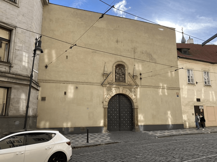 While this slightly austere-looking wall masks the Monastery of the Discalced Carmelites (more on them here: https://whatsinapraguestreetname.com/2024/09/08/prague-1-day-39-karmelitska/).