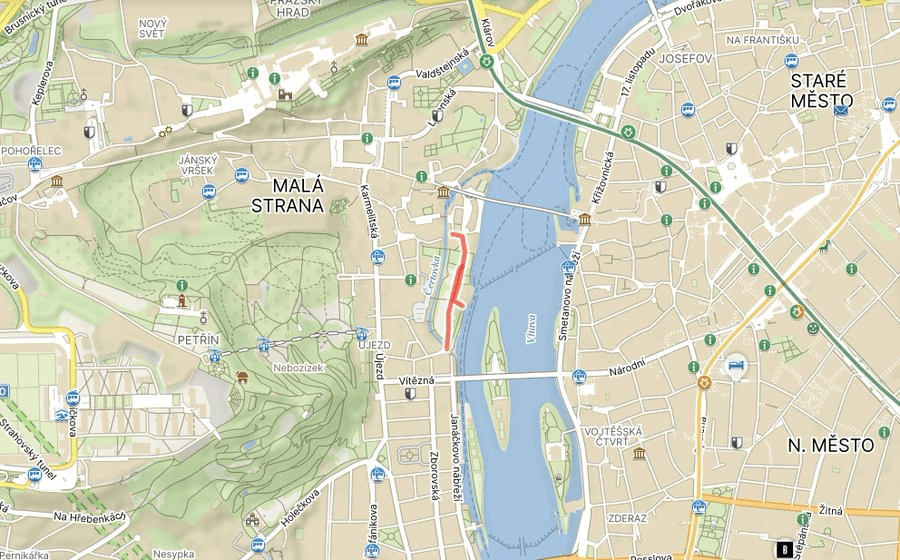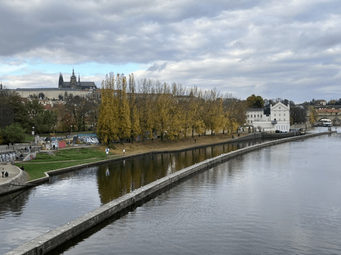 As has been covered a few times in the last few days, the island of Kampa came into being when a canal, Čertovka, was created, aiming to increase the water supply for the mills round here: https://whatsinapraguestreetname.com/2024/09/09/prague-1-day-69-na-kampe/.