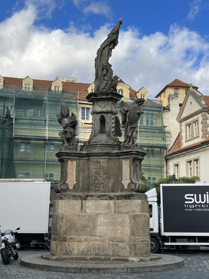 Maltézské náměstí has other things going for it, too. The one you may notice first is this Statue of John the Baptist by Ferdinand Brokoff, who was also responsible for a lot of the works on Charles Bridge (https://whatsinapraguestreetname.com/2024/09/09/prague-1-day-68-karluv-most-charles-bridge/).