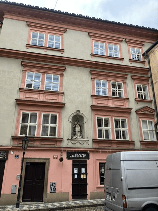 Many churches in Bohemia are devoted to him – and, if you look at number 3 in this street, you’ll see what used to be one of them. It’s been a residential building since 1784.