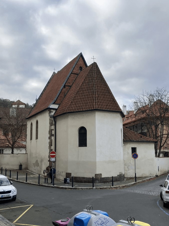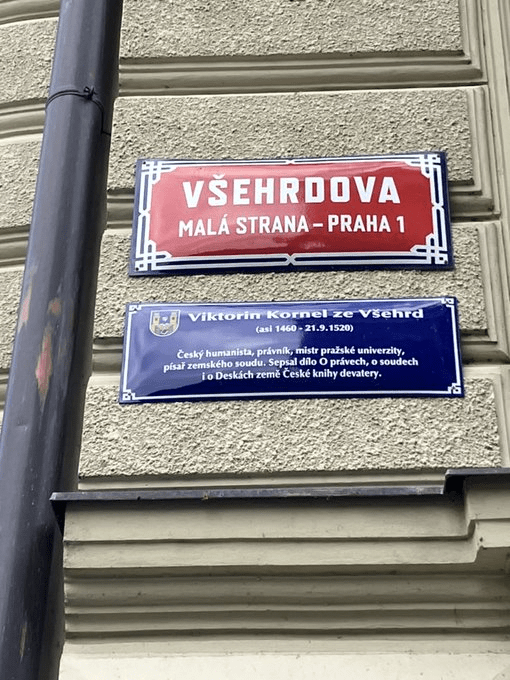 Kornel died of plague in 1520. He’s buried in the Church of St. John the Baptist Na Prádle – which is on this street.
