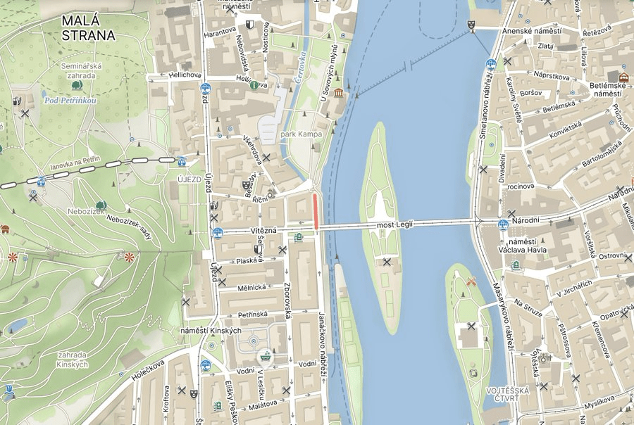 And a nábřeží is an embankment. The name ‘Malostranské nábřeží’ has been applied since 1905.