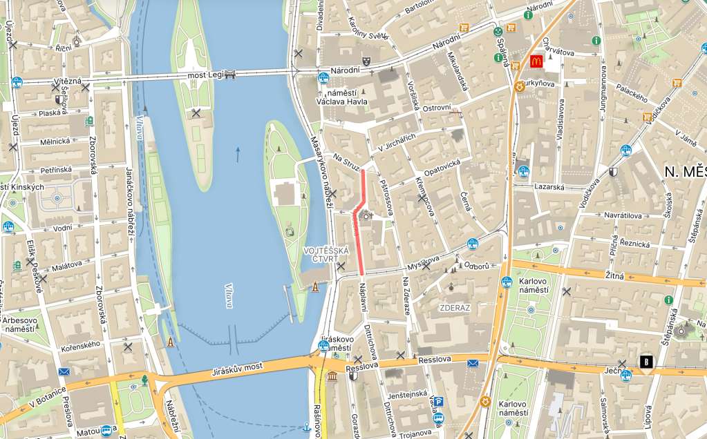 The Church of St. Vojtěch stands in this street, and was first mentioned in writing in 1318.