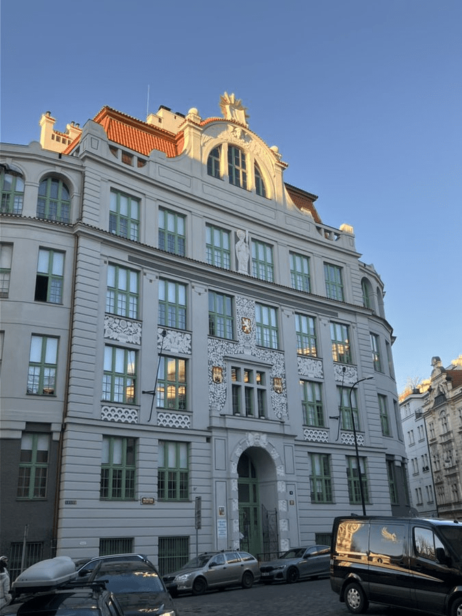 Vojtěšská also includes Spolkový dům Hlahol, belonging to the Prague singing society Hlahol and build around the same time as the school (1904-5). Hlahol was mentioned briefly on https://whatsinapraguestreetname.com/2023/02/26/prague-3-day-146-zvonarova/.