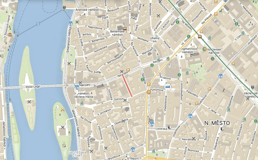 When they moved to another nearby street – which we’re getting to soon-ish – they were replaced by makers of fur coats and goods, and the street was renamed Kožešnická (a ‘furrier’ in Czech is a kožešník).