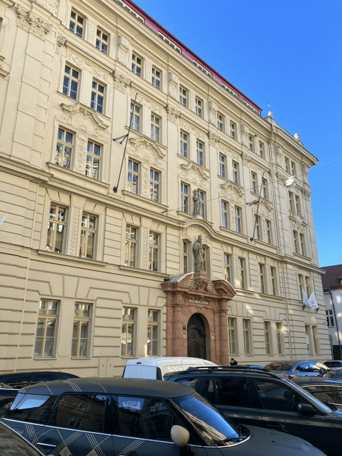 Things that do have their entrance on Voršilská – other than the school – include, at number 1, the Arnošt of Pardubice halls of residence, built in 1901 (on the site of a former monastery) and run/used by Charles University since 1945.