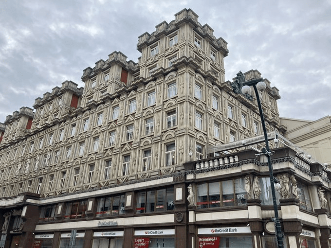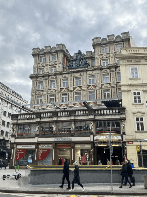 At number 25, Palác Metro was built in 1870 and given an overhaul between 1922 and 1925. Nowadays, it includes three theatres and, because I don’t want to paint an idealised picture of Prague, a KFC.