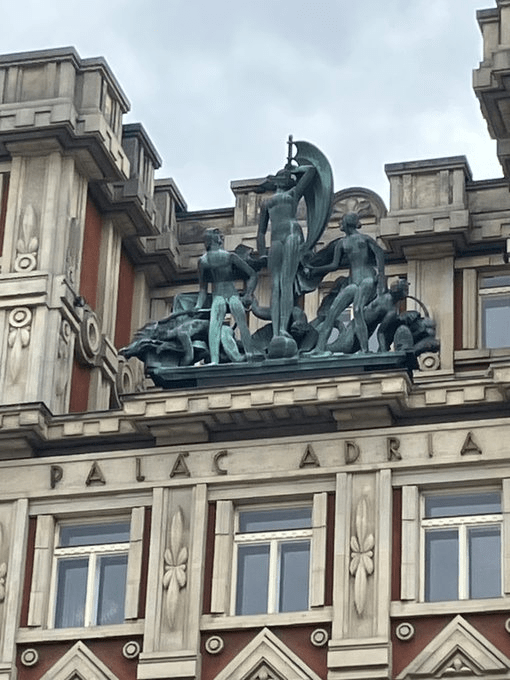Crossing the road, we come to Palác Adria, one of those buildings that could be voted the best building in the world and still be underrated. It was built in 1924 and its style is apparently known as ‘Rondocubist’.