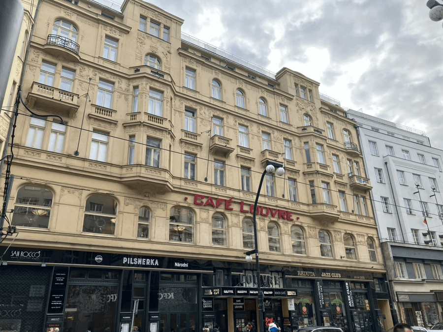 Palác Louvre was built around the turn of the 20th century, replacing an old riding stable. It’s best known for its eponymous cafe, which was one of Kafka’s favourite hangouts and reached the peak of its popularity in the 1920s and 1930s.