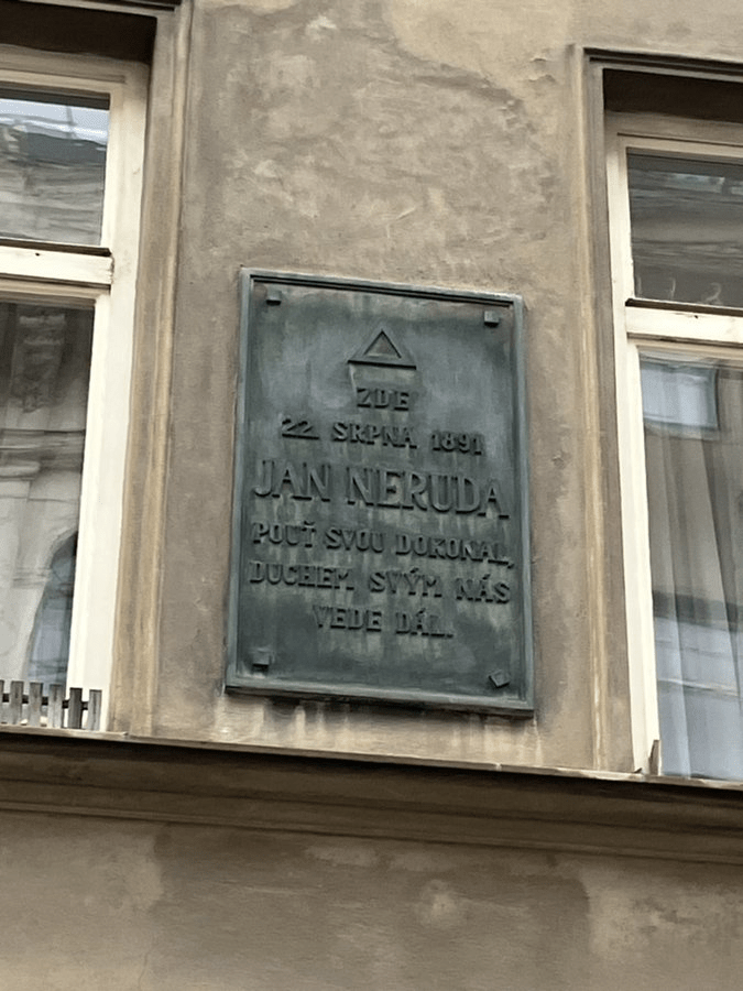 While number 14 was where Jan Neruda (https://whatsinapraguestreetname.com/2024/09/08/prague-1-day-37-nerudova/) lived in later life.