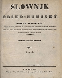 From 1835 to 1839, Jungmann published the five-volume Slownjk česko-německý Josefa Jungmanna (Josef Jungmann’s Czech-German Dictionary).
