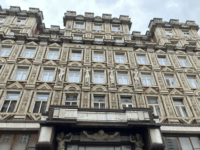 Walk on a bit, and you’ve got another excuse to take even more photos of Palác Adria. As well as the entrance to the Divadlo bez zábradlí.