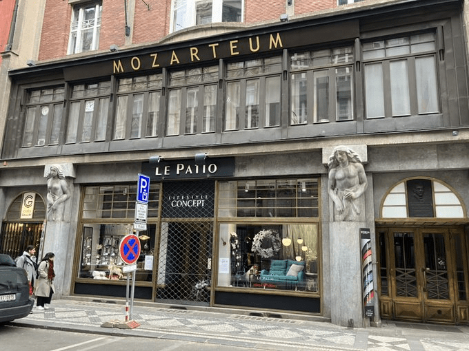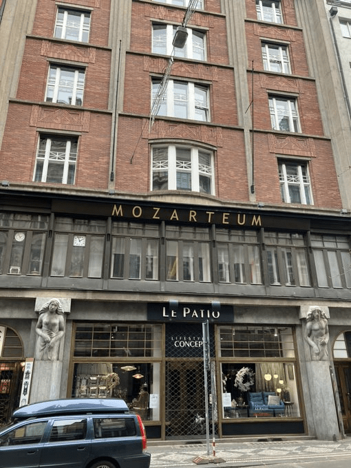 Across the road at number 30, the Mozarteum and its concert hall were never visited by Mozart – what with having been built in 1913 – and used to host a leftist theatre (D 33), as well as, in the 1970s, one of Supraphon’s recording studios.