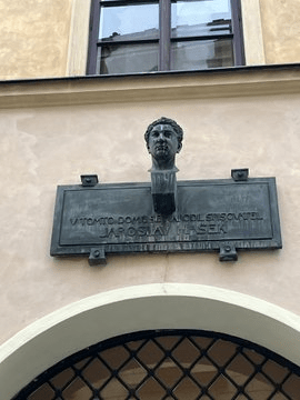 Cross this street (which will take no time at all, it’s very narrow), and you’ve got the family home – and birthplace – of Jaroslav Hašek.