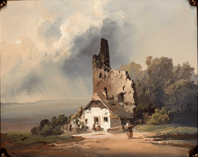 (Pictured: ‘Forest landscape with a girl’, ‘Waterfall on the Mumlava River’, ‘Mountain landscape with lake’ and ‘Landscape with ruins)