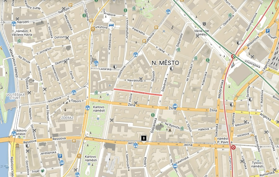 The name has been in place since the 1400s; before then, the street was called Proti věži (Against the Tower) or Věžní (Tower). Take a look at the New Town Hall from Řeznická and you’ll see why.