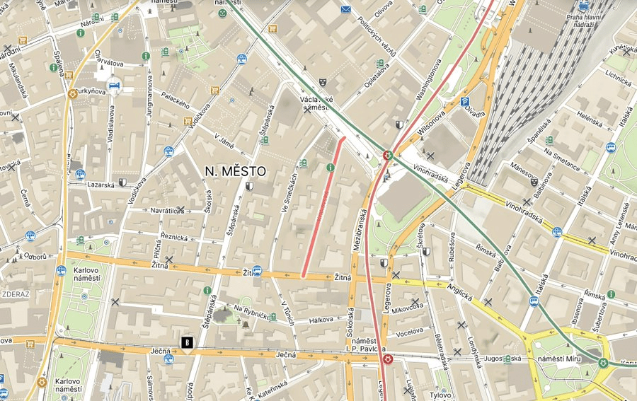 Anyway, when Charles IV founded Prague’s New Town, he arranged for merchants to move over from Kraków, and they settled round here, hence the street name.