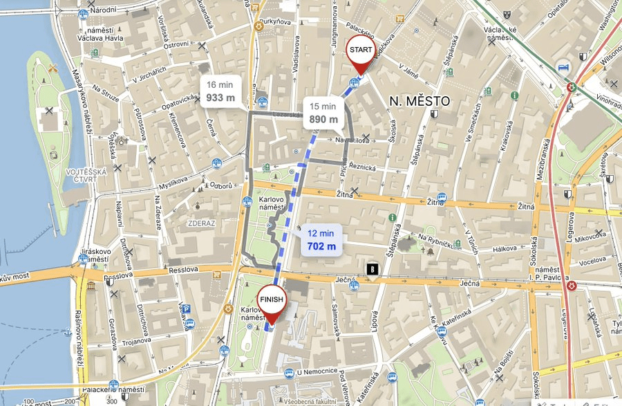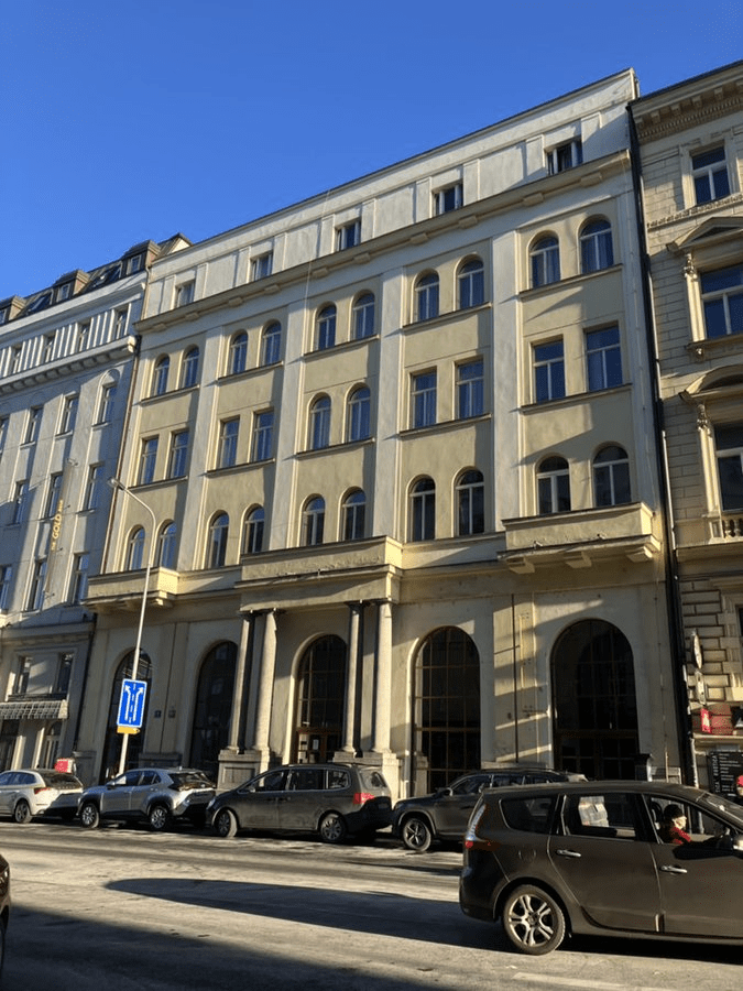 The Neo-Renaissance Daněk Palace, at number 19, used to host the Prognostic Institute of the Czechoslovak Academy of Sciences, but is now used by the Regional Directorate of the Municipal Police for Prague 1.
