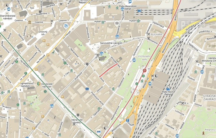 This was partly because the street was next to the church on Jindřišská (coming up on day 131), and also partly because the concept of a nice catchy name that would fit onto a nice red and white street sign hadn’t been invented yet.