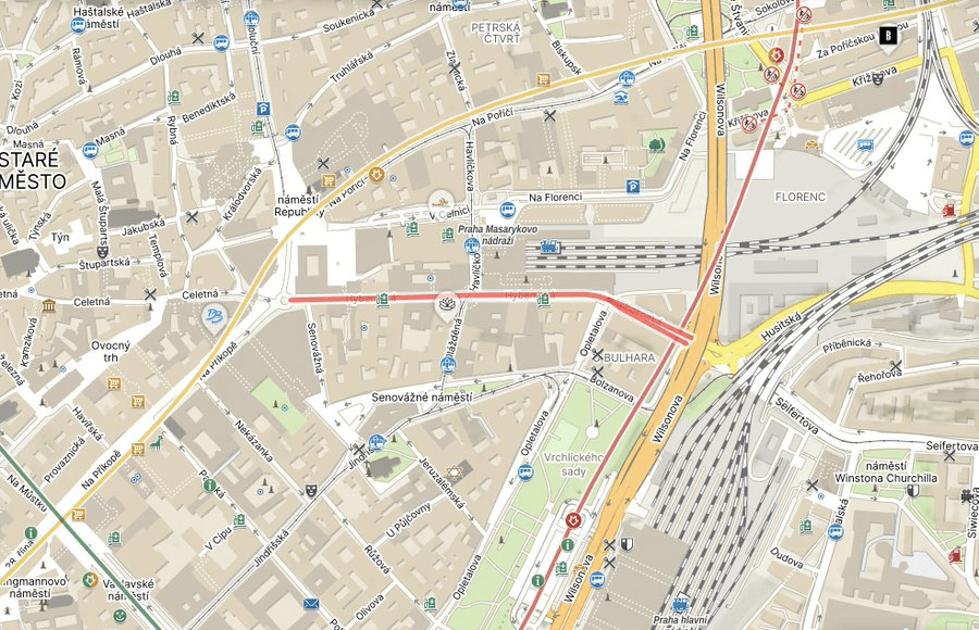 The side of Hybernská that is near Florenc is one of the least aesthetically pleasing parts of Prague 1, but the section nearer to Náměstí republiky is more interesting.